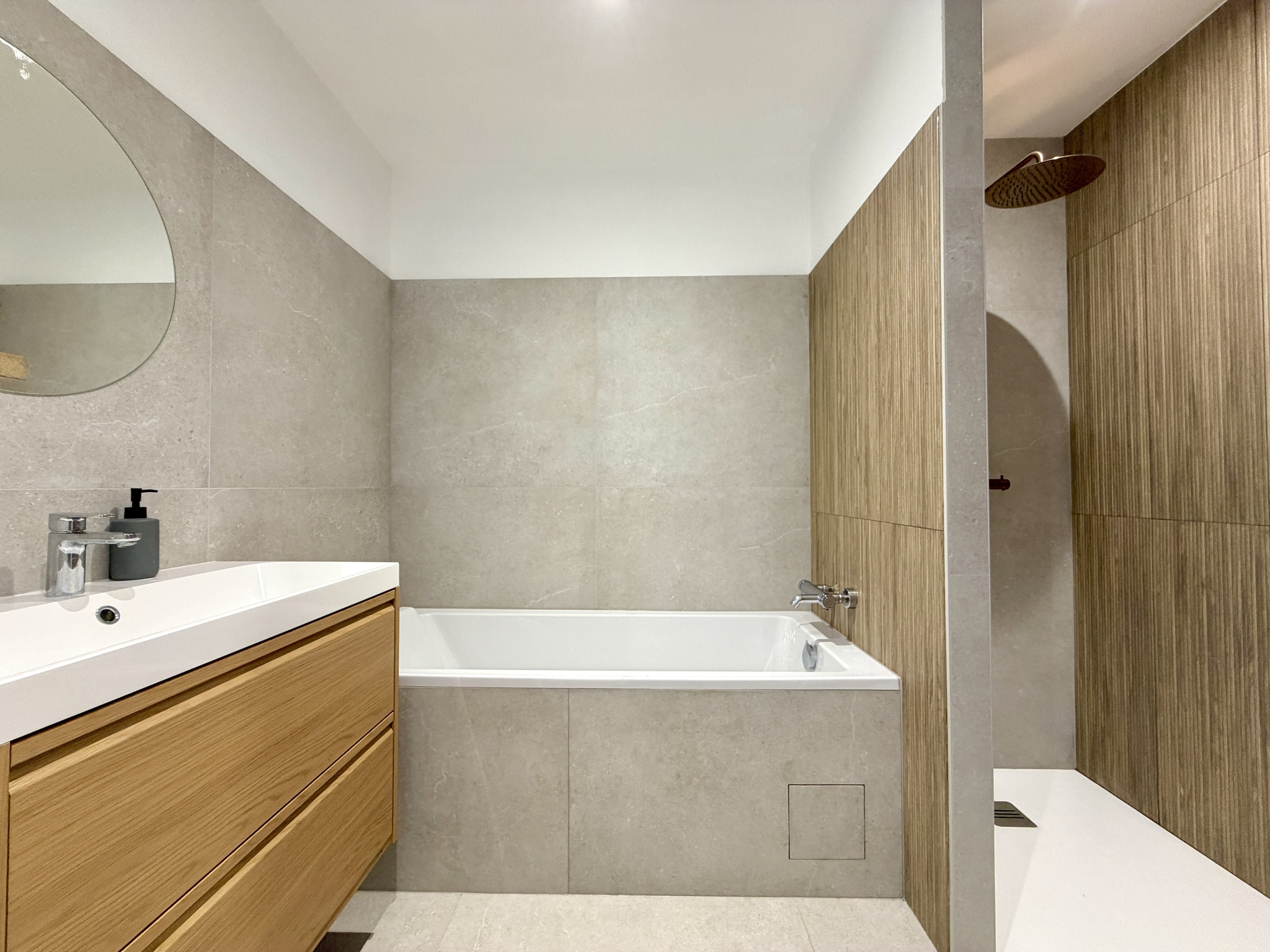 À l'étage ; un palier desservant deux chambres, une salle de bains avec baignoire, douche et wc.